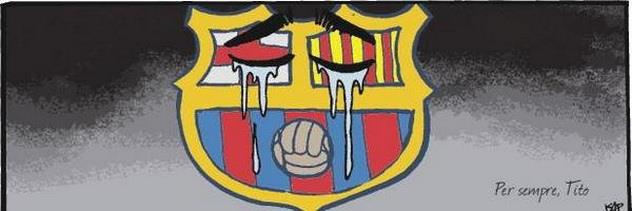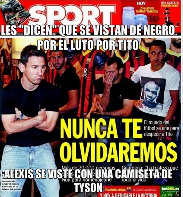 Футболисты Барсы надевают траурные футболки, чтобы почтить память Тито.
