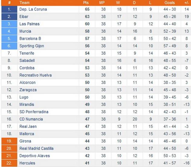 1 – Алавес, Нумансия, Эркулес, Эйбар, Рекреативо, Мурсия, Мальорка, Луго, Хихон