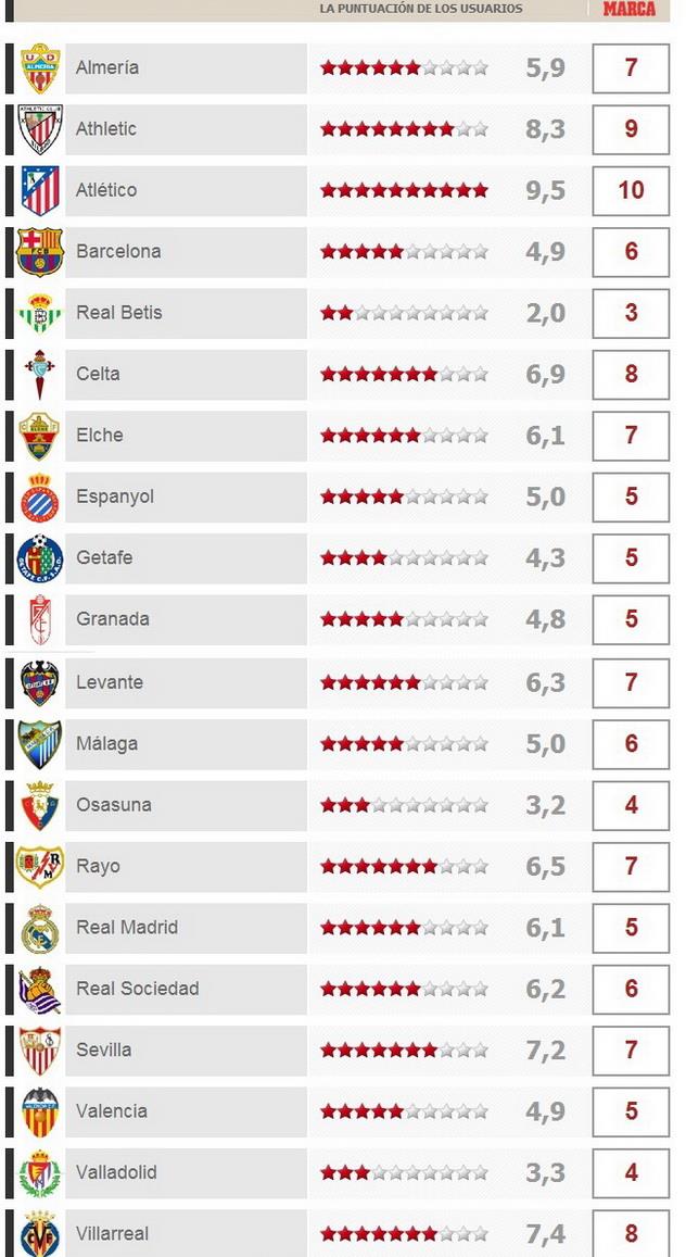 • Худший арбитраж тура: Антонио Мигель Матеу Лаос (Судейский комитет Валенсийского сообщества), главный судья матча Барселона – Атлетико. Нервничал, действовал неровно. По-разному трактовал наказания за одни и те же нарушения. Плохая связь с боковыми арбитрами. Оценка «Марки» — 4,0 (по 10-балльной шкале).
