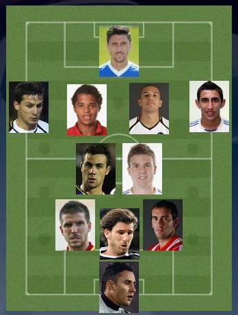 Правый полузащитник. ДИ МАРИЯ (Реал Мадрид, 7). Расположившись на правом фланге, отметился двумя голевыми передачами, став, таким образом, лучшим ассистентом Ла Лиги по итогам сезона. Легко проходил Симау и Фуэнтеса, футболистов Эспаньола, противостоящих аргентинцу на бровке. Не ограничившись ассистами, дважды самостоятельно угрожал воротам Попугаев.