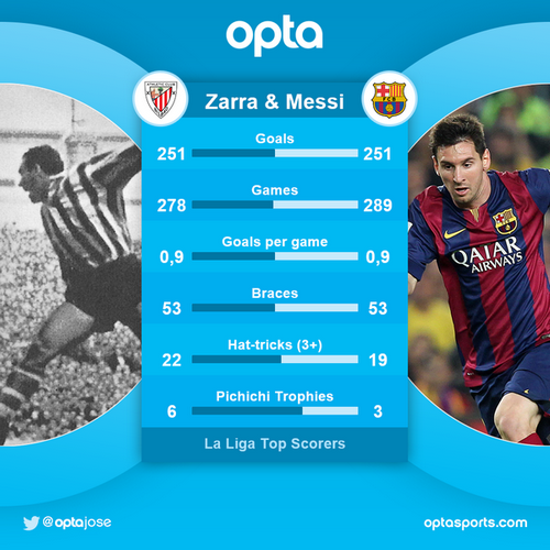 Сегодня поединке с Севильей аргентинец забил свой 251-й гол в Примере и сравнялся с Тельмо Саррой в гонке за звание лучшего бомбардира Примеры в истории.
