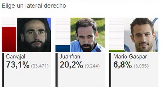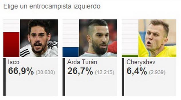 2 – Фабри (Депортиво), Гайя, Алькасер, Фегули, Диего Алвес, Отаменди (все – Валенсия), Хуанфран, Арда Туран, Годин, Габи (все – Атлетико), Инсуа (Райо Вальекано), Марсело, Кроос (оба – Реал Мадрид), Мбия, Пареха (оба – Севилья), Нолито, Ларривей, Серхио Альварес (все – Сельта), Рубен Мартинес (Альмерия), Эчейта (Атлетик), Дардер (Малага), Мой Гомес, Виктор Руис (оба – Вильярреал), Серхио Гарсия (Эспаньол), Жонатас (Эльче)