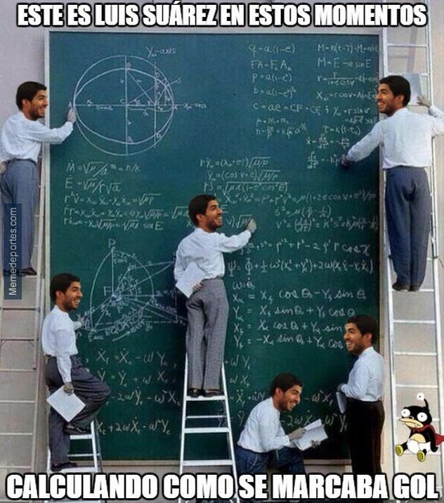 Луис Суарес пытается вычислить при каких математических раскладах он все-таки начнет забивать.