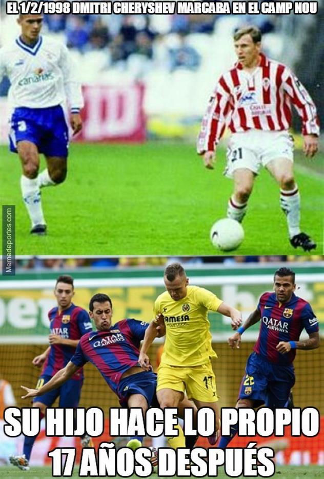 1 февраля 1998 года атакующий полузащитник хихонского Спортинга Дмитрий Черышев забил Барсе на Камп Ноу. День в день, спустя 17 лет, то же самое сделал его сын.