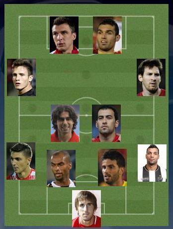 Правый полузащитник. МЕССИ (Барселона, 12). Выдал 90 минут за гранью гениальности. Поучаствовал во всех голевых атаках своей команды, забил гол, записал на свой счет два прямых ассиста, а кроме того, являлся вторым ассистентом в случае с голом Педро и соавтором автогола Оскара де Маркоса. На последних минутах собрал вокруг себя шестерых оборонцев Бильбао, после чего сделал разрезающую передачу на ход Бускетсу – это был шедевр.