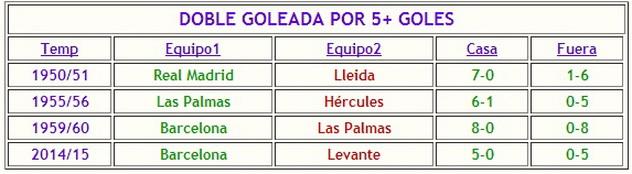 Нынешняя Барса стала четвертым призывом в истории испанской лиги, проделавшим дублирующую голеаду – то есть, победив одну и ту же команду в первом и втором круге с разницей в пять или более мячей.