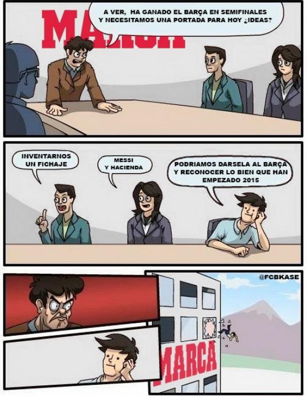- Итак, Барса сегодня выиграла первый матч полуфинала Копа дель Рей. Нам нужен громкий заголовок! Идеи?