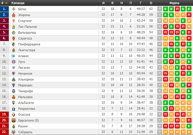 Таким образом, Бетис продолжает лидировать с преимуществом в три очка, а Осасуна вошла в крутое пике внизу турнирной таблицы.