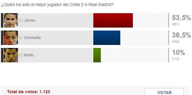 Правый полузащитник. ХАМЕС РОДРИГЕС (Мадрид, 10). Вместе с Чичарито был лучшим среди мадридистас в Виго. Забил гол, сделал точную передачу, не гнушался вступать в единоборства, два из которых выиграл. В общем, продемонстрировал очень полезный и эффективный футбол.