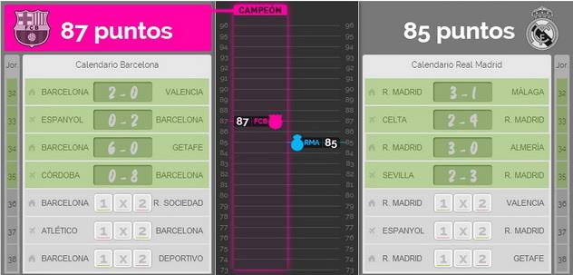 - которых отделяет друг от друга 64 очка (COR – 20, FCB – 84).