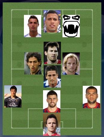- (Атлетик), Какута (Райо Вальекано), Хави, Ракитич (оба – Барселона), Жонатас