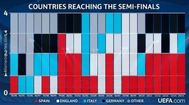 - Примера лидирует по кол-ву полуфиналистов ЛЧ в последние годы.