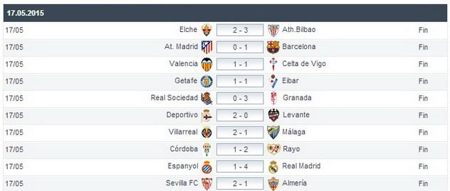 В следующем розыгрыше этого турнира у Испании будет либо 3 (если Севилья проиграет в финале ЛЕ – 2015), либо 2 (если Севилья выиграет финал – 2015, но не сможет квалифицироваться в лигачемпионскую четверку из внутреннего турнира, тогда она попадет в ЛЧ пятым представителем ЧИ) команды. Как бы там ни было, расклад на сегодняшний день такой: Севилья точно в еврокубке, но пока непонятно в каком именно, Вильярреал точно в ЛЕ – 2015/16, а на еще одну возможную путевку претендуют Атлетик, Малага и Эспаньол. Из числа претендентов в отчетном туре отсекся Райо. Даже если Молнии догонят Бильбао по очкам, то по личным встречам у них равенство (2:1, 0:1, правило выездного гола не учитывается), а вот по разнице забитых и пропущенных мячей вообще швах: -20, тогда как у басков -3.