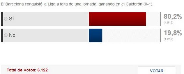 Новоявленный чемпион Испании поздним рейсом преодолел маршрут Барахас – Эль Прат, но город, конечно, не спал. Клубный автобус, окруженный полицейскими, тяжело продвигался от аэропорта Эль Прат к стадиону Камп Ноу, поскольку его движению мешали люди и автомобили, то и дело преграждавшие дорогу. В самой же столице Каталонии очередной титул местного достояния вызвал предсказуемую реакцию: на улицы города высыпала многотысячная толпа, а празднования, традиционно плавно перетекающие в стихийные массовые беспорядки, продолжались всю ночь. Моссос де Эскуадра, каталонская полиция, объявила 24-часовой авральный режим: с 12 часов дня 17 мая до 12 часов дня 18 мая. В это время все старательно объезжали оцепленную со всех сторон Площадь Каталонии – главную зону празднования неистовых фанатов блаугранас.