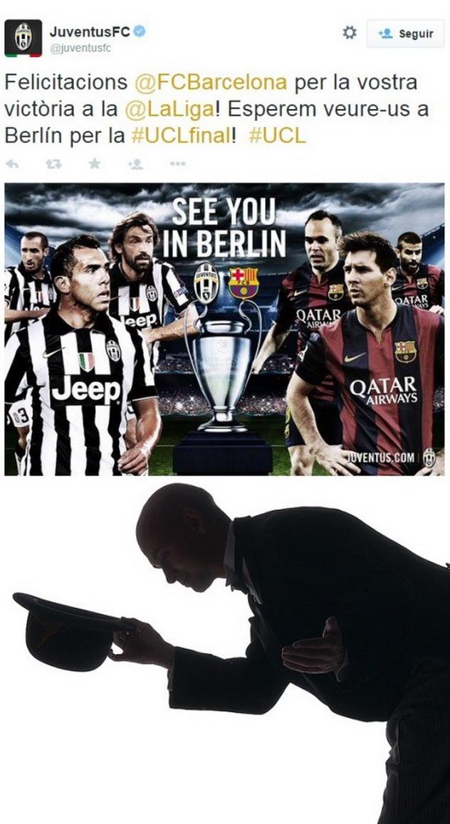 - «Ювентус поздравляет Барселону с победой в Ла Лиге! До встречи в Берлине!»