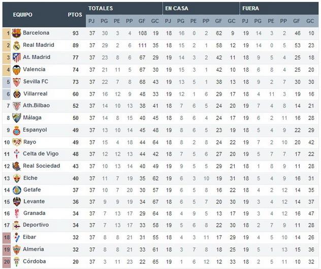 В подвалах турнирной таблицы сложился следующий статус-кво: Кордоба попрощалась с элитным дивизионом, тогда как Леванте обеспечил себе спасение. На две оставшиеся путевки в ад претендуют 4 коллектива, отделенные друг от друга двухочковым водоразделом: выше него находятся Насриды и Депор, ниже – Оружейники и Альмерия.