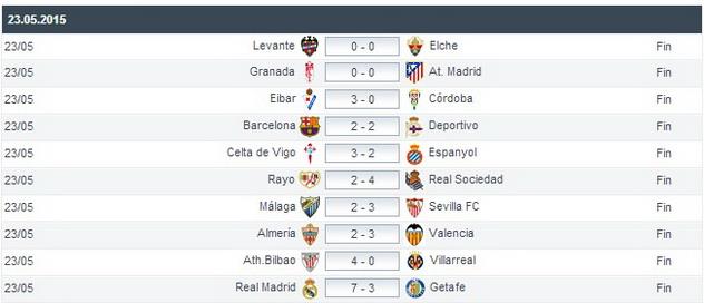 - Чемпионат Испании по футболу 2014/15 завершен.