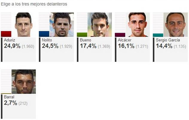 - (Вильярреал), Касилья (Эспаньол), Габи, Манджукич (оба – Атлетико), Хулиан,