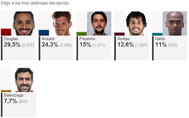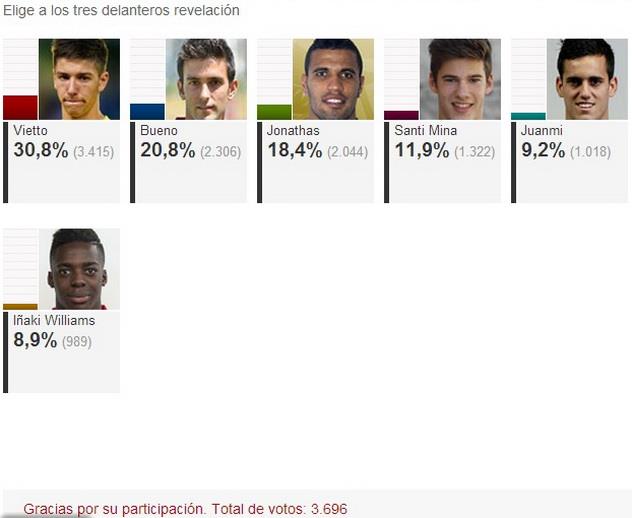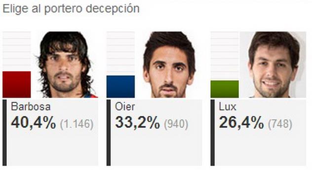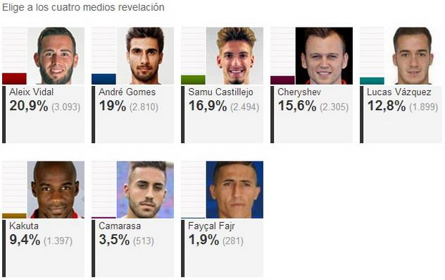 - Рубен (оба – Альмерия), Велигтон (Малага), Бартра (Барселона), Ларривей (Сельта)