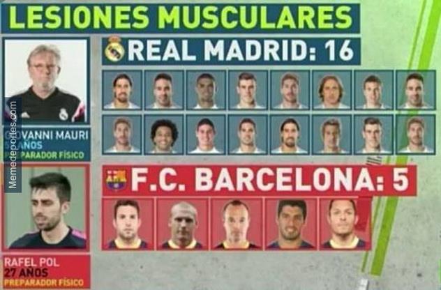 - Количество футболистов RMA и FCB, получавших мышечные травмы в сезоне