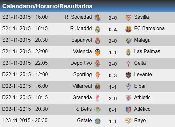Клаудио Браво (Барселона) – Хави Лопес (Эспаньол), Феддал (Леванте), Бабен (Гранада), Хорди Альба (Барселона) – Серхи Роберто (Барселона), Иньеста (Барселона), Хонатан Виера (Лас Пальмас) – Эрнан Перес (Эспаньол), Суарес (Барселона), , Саксэсс (Гранада)
