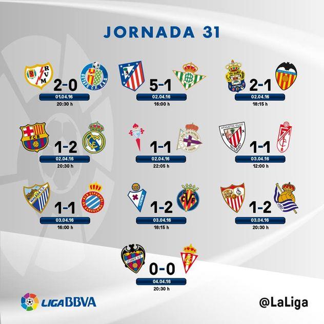 Football.ua подводит итоги тридцать первого тура чемпионата Испании.