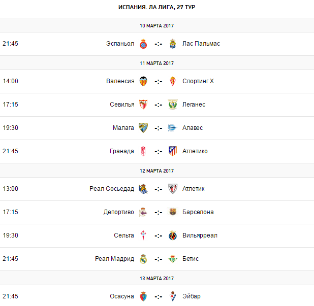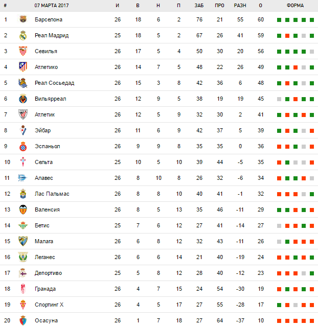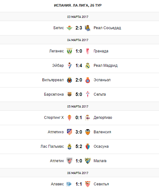 26-й тур Примеры прошел практически без сенсаций. Из первых 7 команд турнирной таблицы победить не удалось лишь одной. Речь о Севилье, но об этом немного позже. Также прогнозируемой победы добился Лас Пальмас, который в родных стенах покуражился с Осасуной.