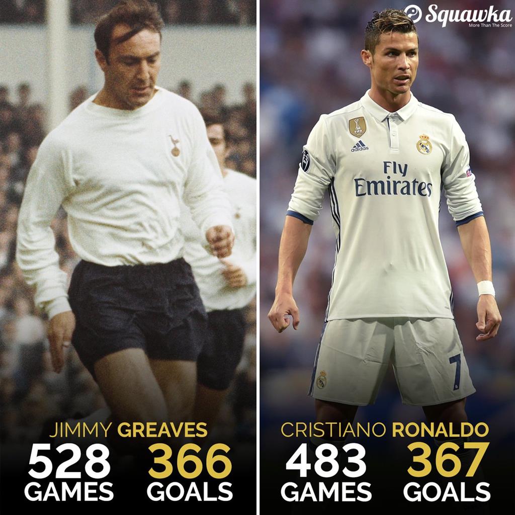 Роналду забил 3 мяча за Спортинг, 84 за Манчестер Юнайтед и 280 за мадридский Реал. Португалец стал лидером, обойдя легендарного нападающего Тоттенхэма Джимми Гривза.
