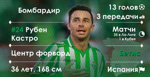 Лучший бомбардир: Рубен Кастро (13 голов, 3 ассиста)