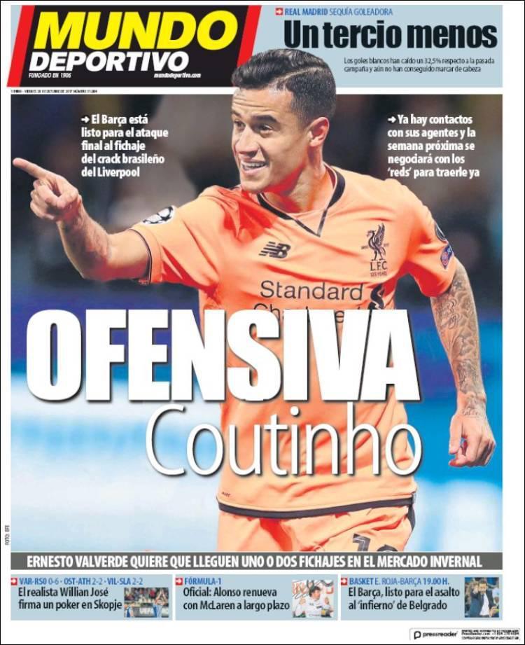 Сообщается, что Барселона попытается уменьшить сумму, требуемую за футболисту, поскольку он не сможет помочь команде в нынешнем розыгрыше Лиги чемпионов, поскольку заигран за Ливерпуль.