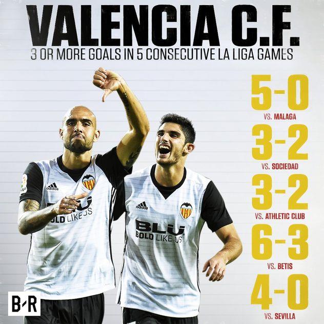 3 — Валенсии удалось забить 3 и более голов в каждом из последних 5 матчей в Ла Лиге.