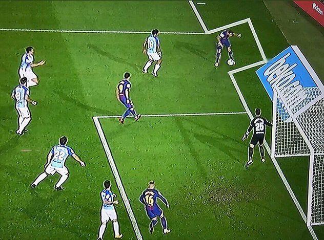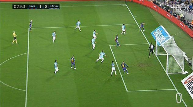С какой задачей приезжают команды вроде Малаги на Камп Ноу? Цель номер один — не пропустить быстрый гол, и с этой задачей гости не справились. Но они, на самом деле, в этом нисколько не виноваты. На исходе второй минуты встречи Динь прорвался по левому флангу, упустил мяч за пределы поля, а затем отдал результативную передачу на Деулофеу, который с легкостью переправил мяч в ворота. Кипер Малаги Андрес Прието, так и не двинулся с ближней штанги — был уверен, что у арбитров есть глаза и они увидят очевидное. Но Гонсалес Фуэртес и его команда засчитали этот гол.