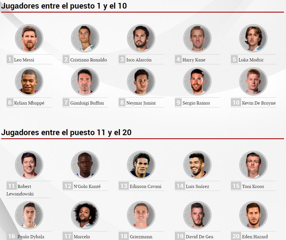 Первую строчку в рейтинге занял аргентинец Лионель Месси, который обошел обладателя Золотого мяча Криштиану Роналду.