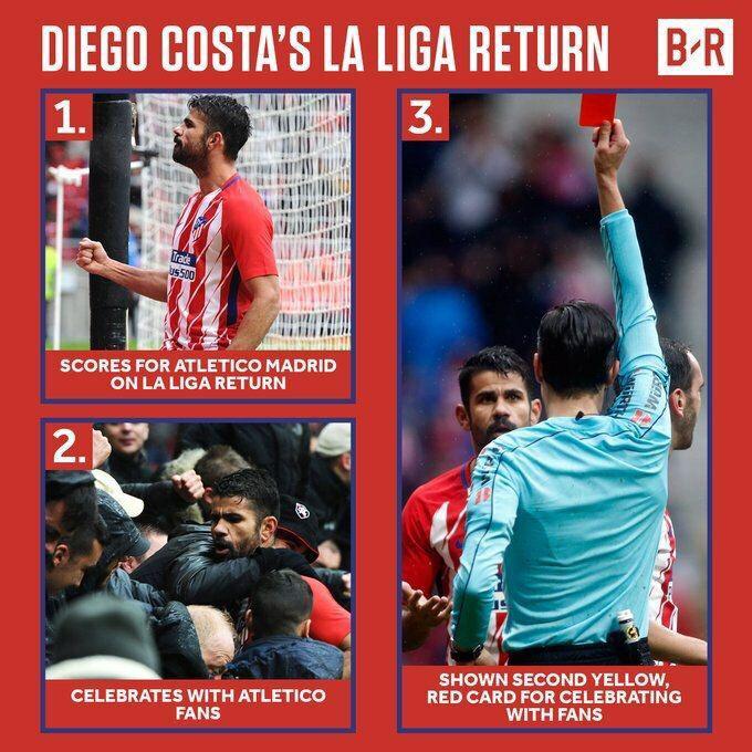Пришел, увидел, победил? Нет! Приехал, забил, удалился. Диего Коста умудрился заработать удаление в первом же матче чемпионата. После забитого гола на Ванда Метрополитано в ворота Хетафе Диего побежал разделить минуты радости с болельщиками Атлетико, за что вполне справедливо получил вторую желтую карточку и отправился на заслуженный отдых.