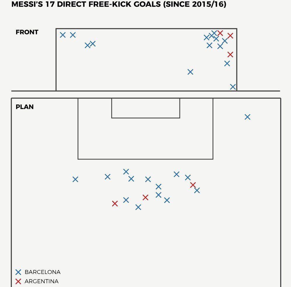 Также начиная с сезона 2003-2004 Месси является автором наибольшего количества голов со штрафных в Примере.