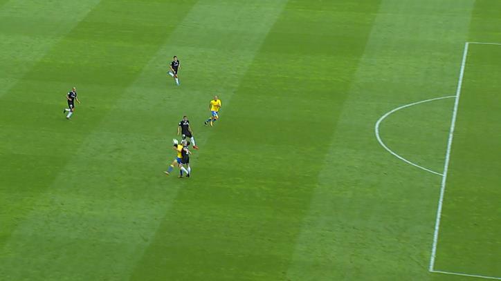 За такое отношение к поединку Барса вполне могла быть наказана, но крест на надеждах Эйбара поставило удаление Орельяны. Одно из самых нелепых удалений на моей памяти. Фабиану не понравилось решение арбитра в одном из эпизодов и в пылу спора он рукой пнул мяч. Вот, полюбуйтесь.