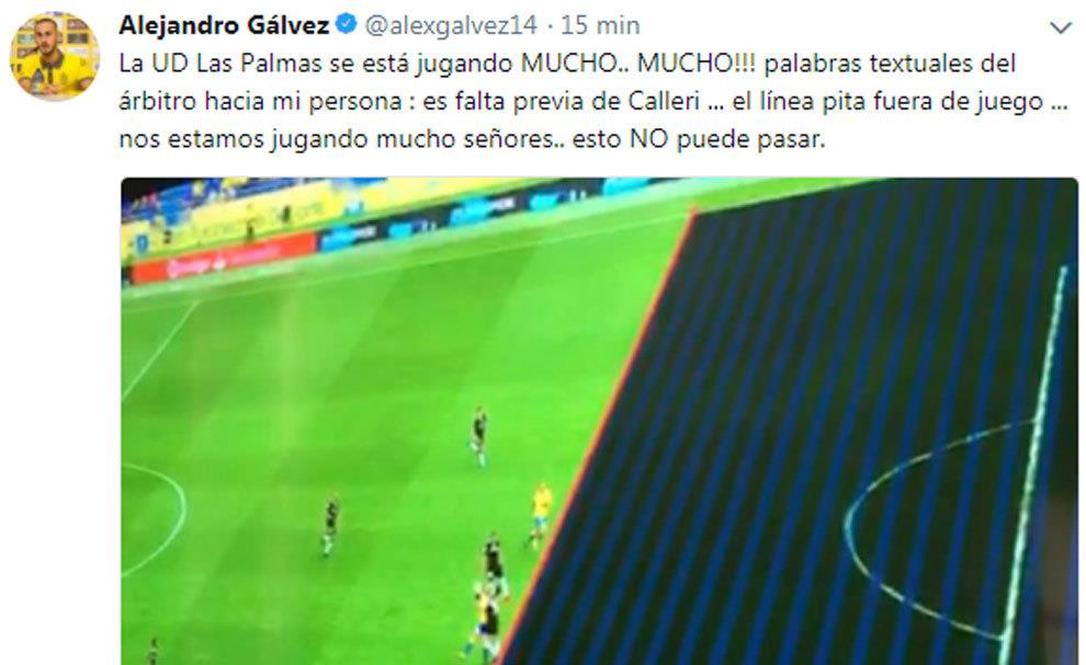 Результативная ошибка, которая повлияет как на борьбу за 4-е лигочемпионовское место, так и битву за выживание. Если бы не эта ошибка арбитра, то Вильярреал уже обогнал бы Севилью в турнирной таблице и выкинул бы ее из топ-5, а Лас-Пальмас вплотную подобрался бы к спасительному 17-му месту. Однако, у судей были свои планы. Вот скриншот с прочерченной линией в придачу с возмущениями Гальвеса в Твиттере.