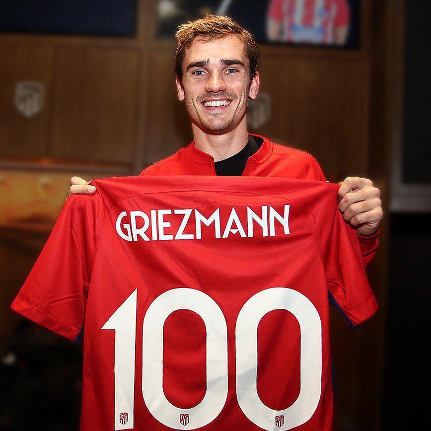 100 — Антуан Гризманн забил 100-й гол за Атлетико.