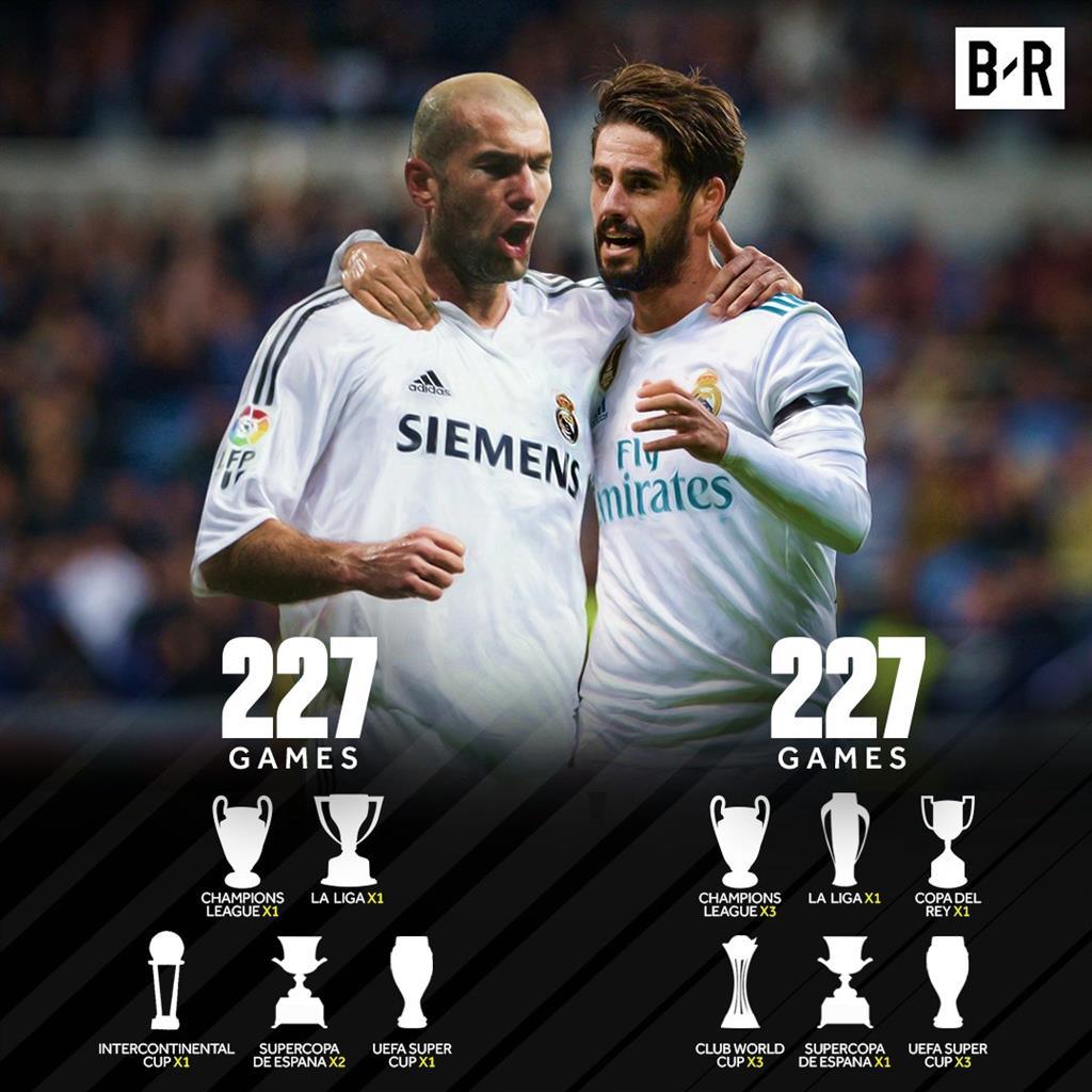 227 — Иско догнал Зидана по числу сыгранных матчей за Реал — 227.