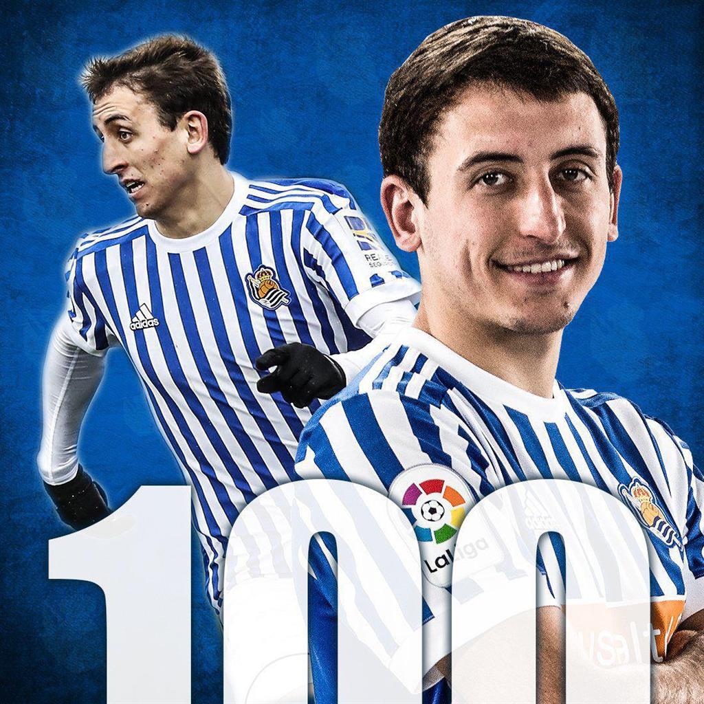 100 — Микель Оярсабаль провел 100-й матч за Реал Сосьедад.