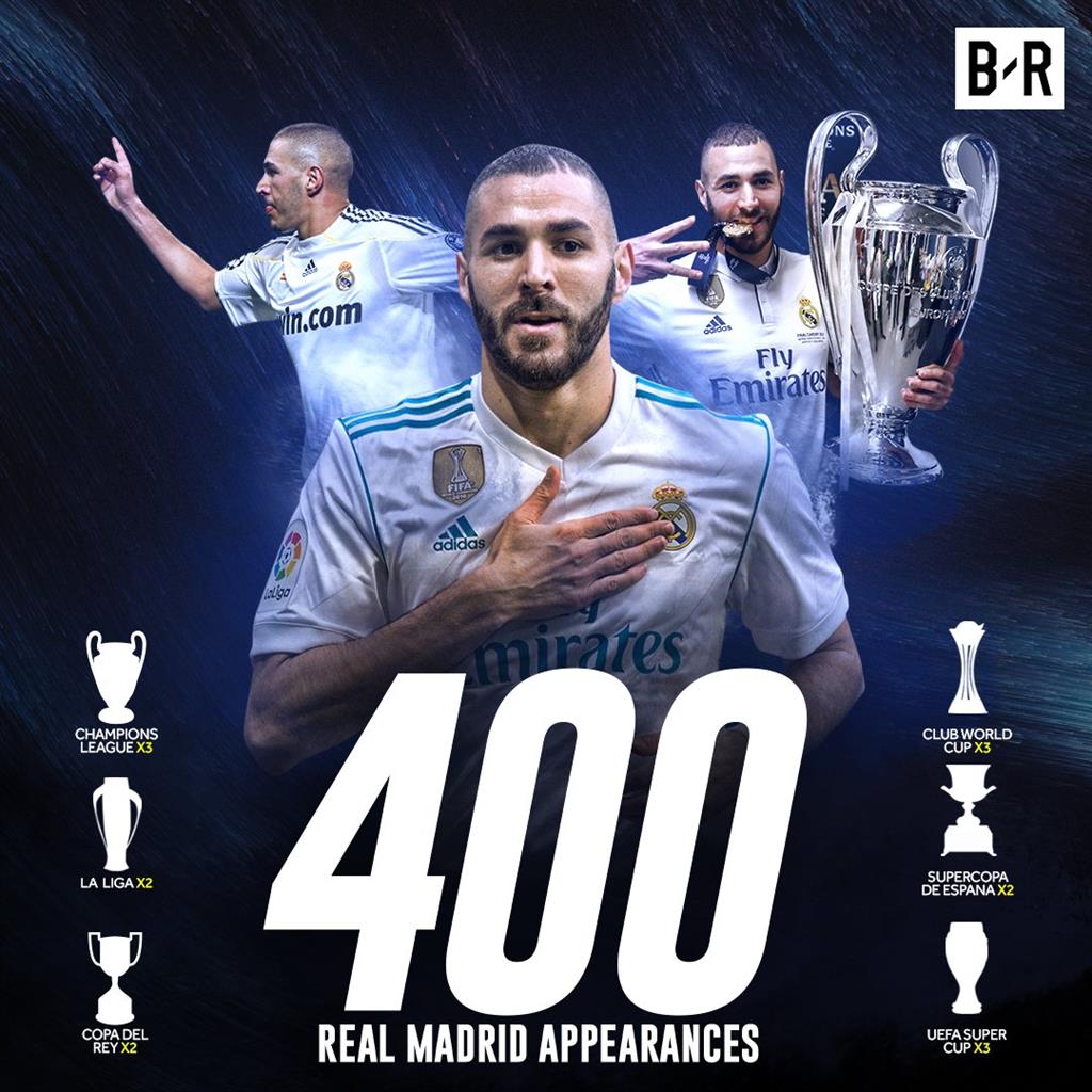 400 — Карим Бензема вышел на поле в футболке Реала в 400-й раз во всех турнирах.