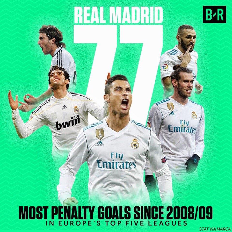 77 — Реал Мадрид забил 77 пенальти с сезона 2008/09 — больше, чем любой другой клуб из топ-5 чемпионатов.