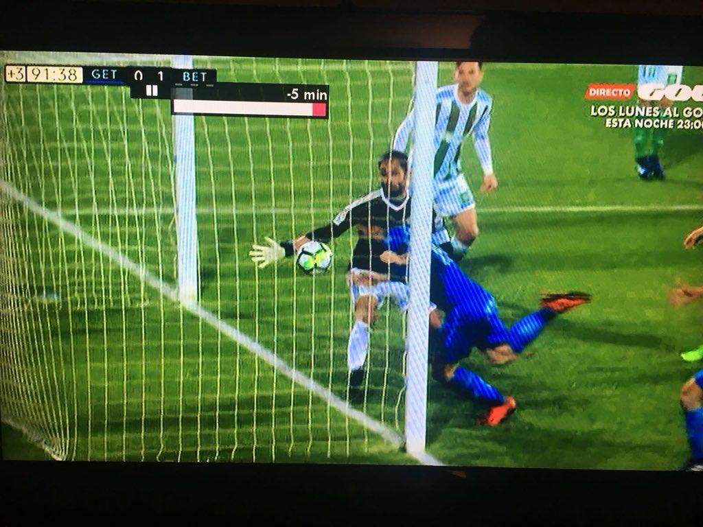 На 92-й минуте матча Хетафе все-таки сравнял счет, но Мальенко и его коллеги этого не заметили. Адан вынимал мяч уже из сетки ворот, но арбитрам показалось, что мяч линию не пересек. Скрин ниже ни о чем не говорит, но лучшего найти просто не удалось. Если хотите убедиться, посмотрите повтор эпизода. Как итог — Мальенко отправляет Бетис на 6-е место. Теперь у команды Сетьена столько же очков, сколько и у Севильи. Борьба за пятое место будет впечатляющей.
