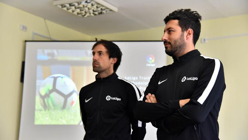 В первый день состоялось 3 теоретических и 2 практических сессии. Молодые специалисты ознакомились с методикой La Liga и получили информацию о структуре тренировок, а затем переместились на поле и понаблюдали за работой гостей с юношами во время тренировочного процесса.