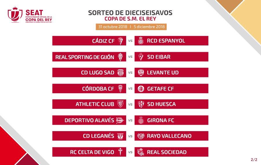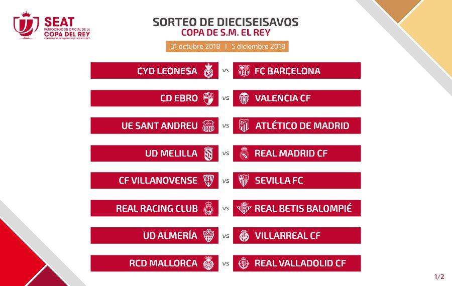 Все пары 1/16 финала Копа дель Рей выглядят следующим образом: