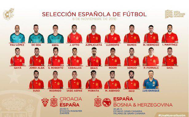 Сборной Испании в ноябре предстоят матчи против Хорватии (Лига наций) и Боснии (товарищеский матч). В сборную вернулся один из лучших левых защитников мира Хорди Альба, у которого есть проблемы личного характера с главным тренером Луисом Энрике.