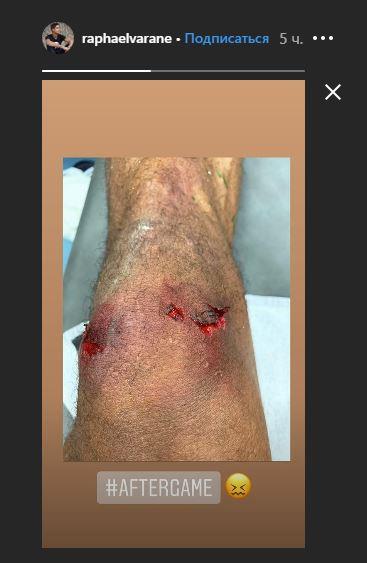После того автогола Варан пару минут провел на газоне, держась за колено, но сумел продолжить матч. После поединка француз поделился фотографией того самого колена, которое пострадало в эпизоде с автоголом.