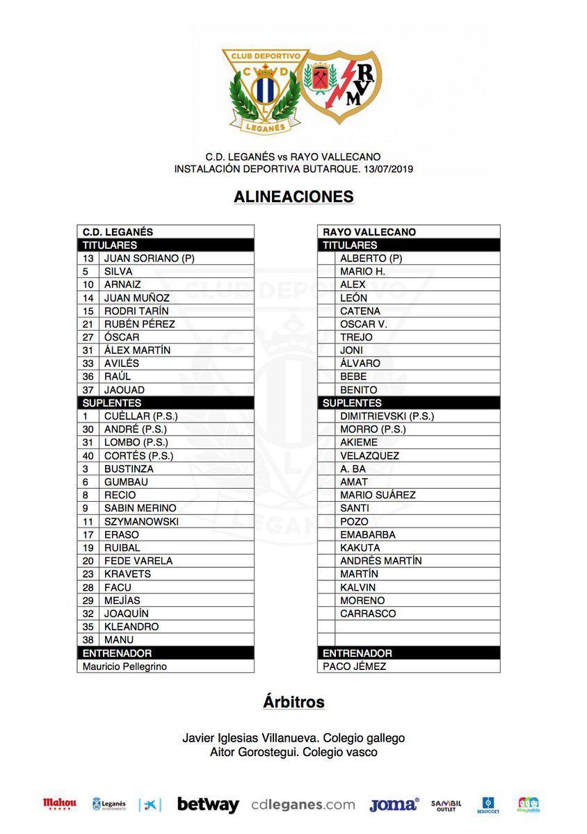 Стартовый состав Леганеса: Сориано – Тарин, Муньос, Арнаис, Силва – Рауль, Авилес, Мартин, Оскар, Рубен Перес – Хакад.