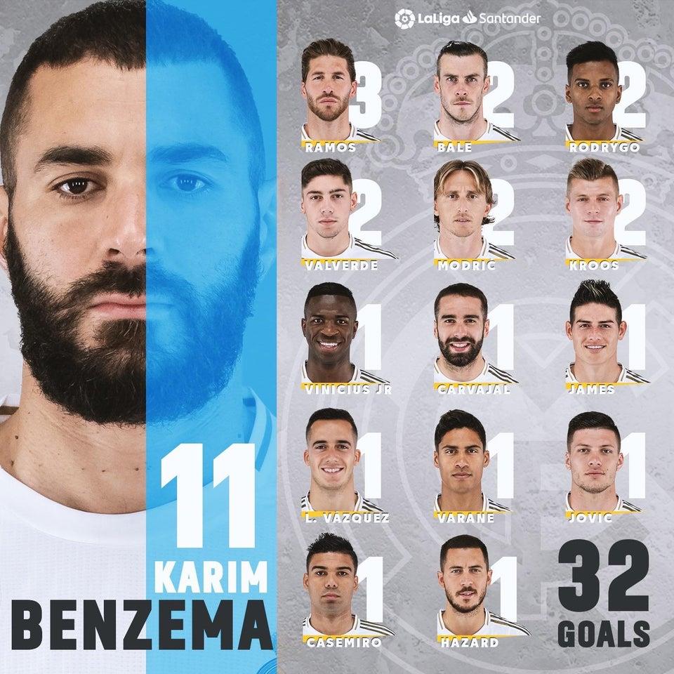 По два гола забивали Бэйл, Родриго, Вальверде, Модрич, Кроос, по одному – Винисиус, Карвахаль, Хамес, Васкес, Варан, Йович, Каземиро и Азар.