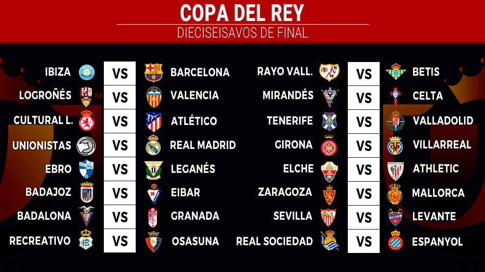 Завершилась процедура жеребьевки 1/16 финала Кубка Испании, в которой приняли участи 32 клуба.